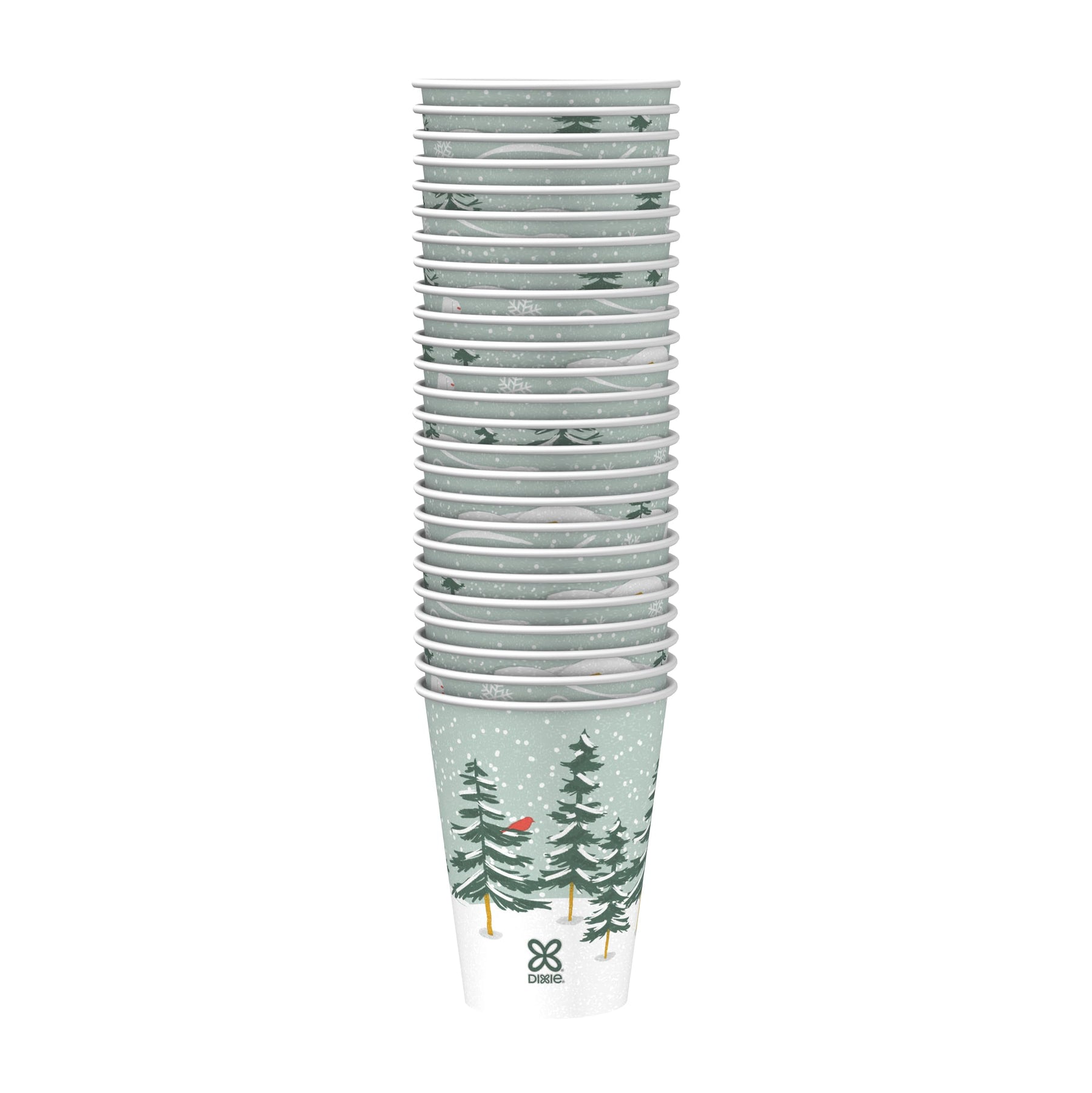 The Dixie® PerfecTouch® 12 oz insulated paper coffee cups with Limited Edition Holiday Cups in 3 Winter Fun Designs per pack add a touch of seasonal cheer to any occasion. These 12 oz hot cups are ideal for winter celebrations, office gatherings, or simply enjoying a warm drink on a cold day. Made with an insulated design, these disposable coffee cups help retain heat while keeping hands comfortable, making them a great alternative to double-cupping. These 12 oz coffee cups are compatible with Dixie® coffee cup lids, offering a secure fit to prevent spills, making them ideal for on-the-go use. They are suitable for a range of settings, including coffee shops, offices, and home use, where paper cups that combine durability and comfort are essential. Dixie® PerfecTouch® Paper Cups are USDA BioPreferred® Certified Products and SFI® certified; these insulated coffee cups reflect a commitment to sustainability. Whether you need paper coffee cups 12 oz for your café or disposable coffee cups for your next event, Dixie® PerfecTouch® offers a reliable solution that combines convenience, comfort, and style.