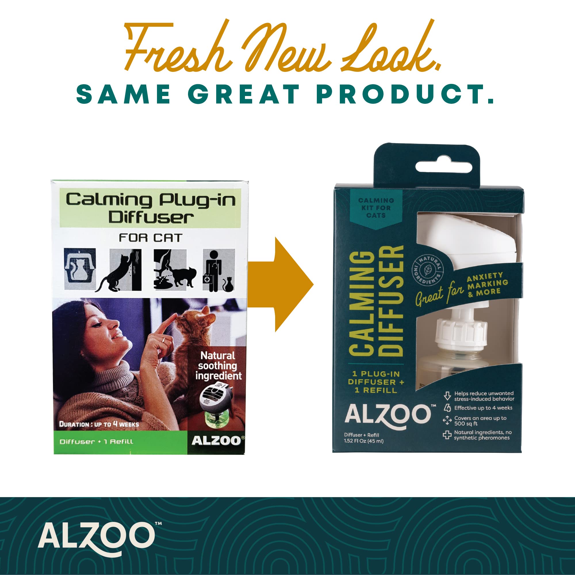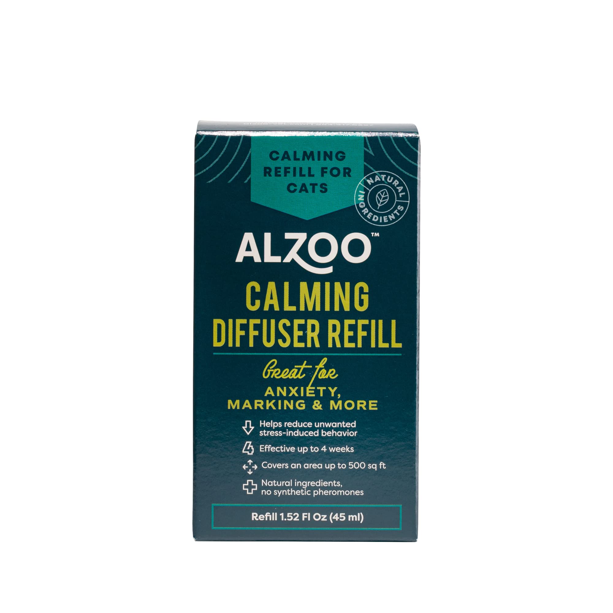 ALZOO Calming Diffuser Refill for Cats, Helps Reduce Unwanted Stress-Induced Behavior, 100% Plant-Based Active Ingredients, Covers Up to 500 Sq. Ft, 1.52 Fl. Oz.