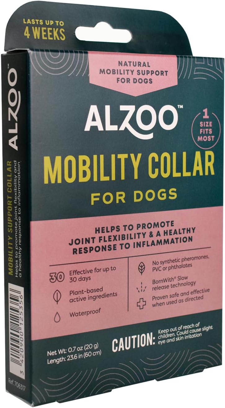 ALZOO Mobility Collar for Dogs, Helps Promote Joint Flexibility, 100% Plant-Based Active Ingredients with Wintergreen and Moroccan Rosemary Oil, Single