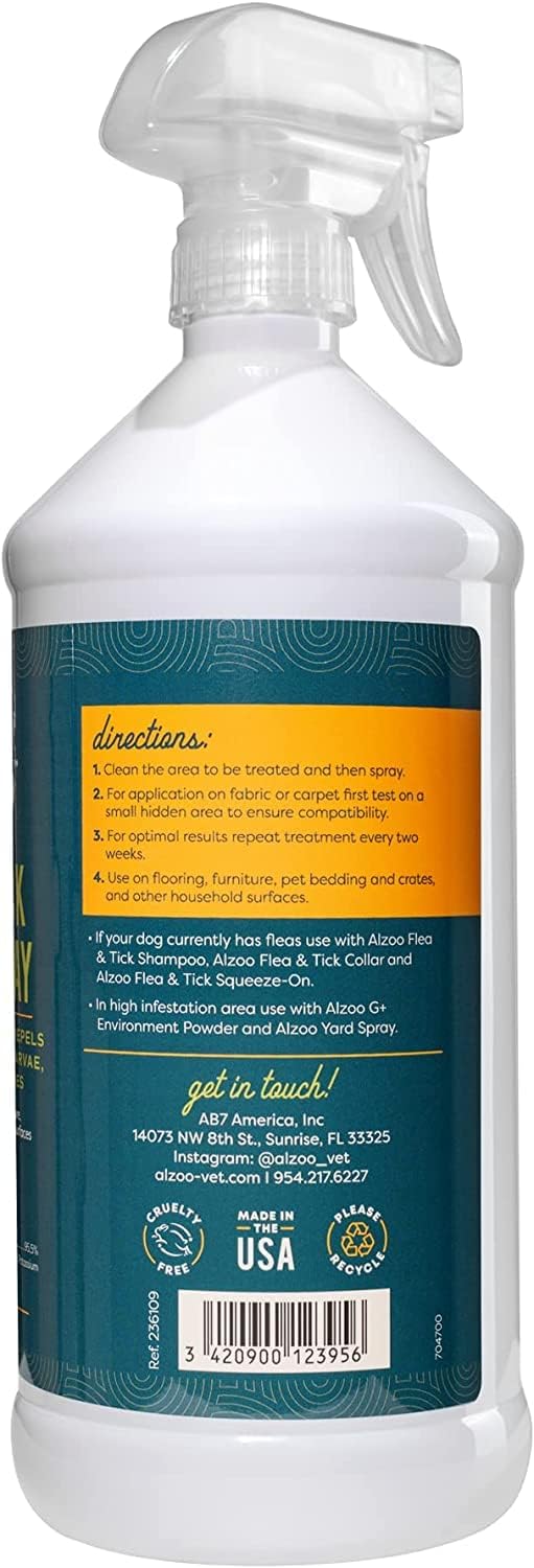 ALZOO Natural Flea & Tick Home Spray, Helps Eliminate and Repel Pests, Use on Flooring, Furniture, Pet Beds, Plant-Based Active Ingredients, 32 Fl. Oz.