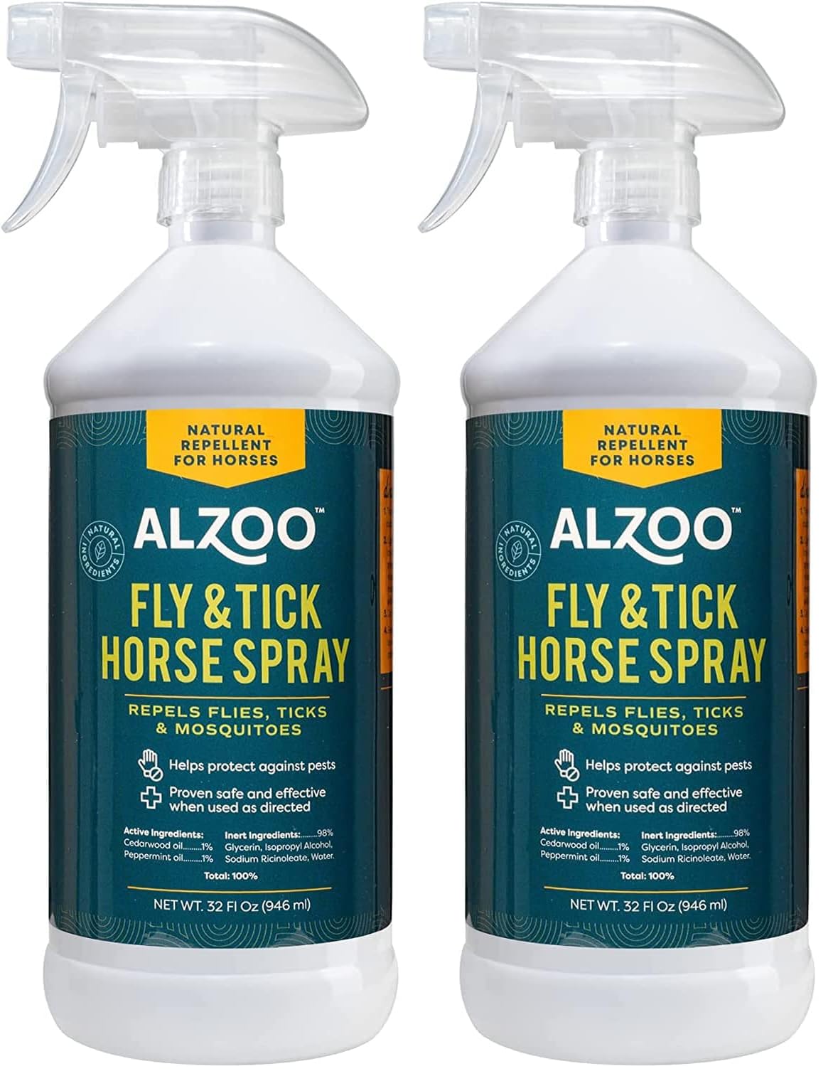 ALZOO Natural Fly and Tick Horse Spray, Helps Repel Mosquitoes, Horseflies & Ticks, Plant-Based Active Ingredients, 32 Fl. Oz. Spray Bottle