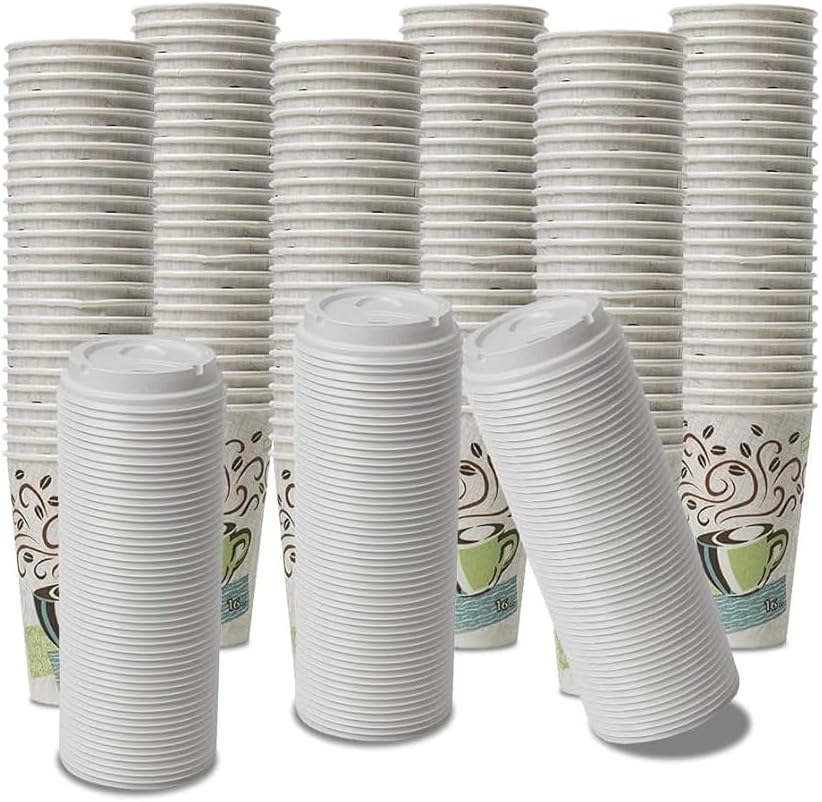Coffee Design Insulated Paper Cup, 12oz Cups and Lids Bundle (12 oz, 150 Cups, 150 Lids)