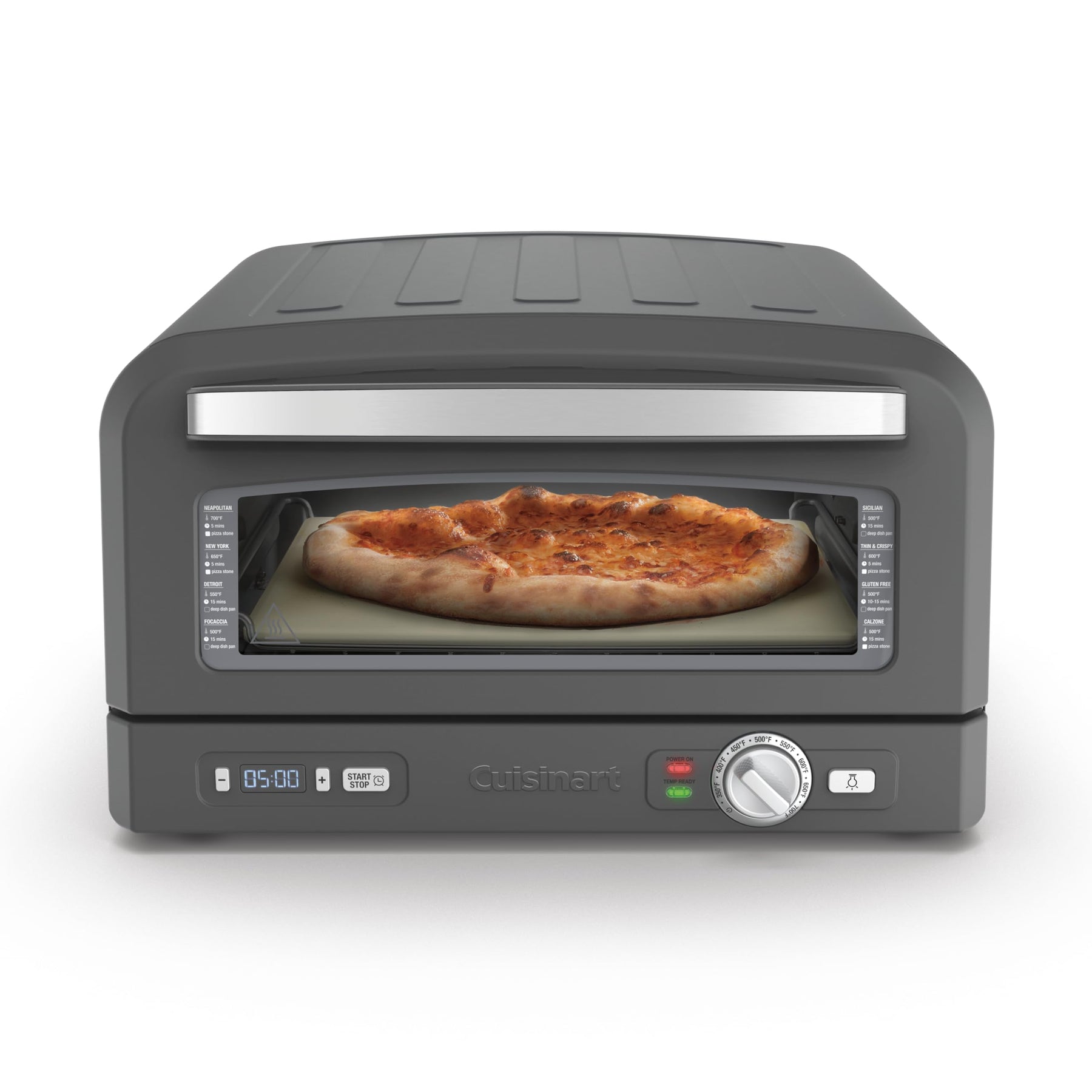Do pizza night right with the Cuisinart® Indoor Pizza Oven—a must-have for making artisanal 12” pizzas right in your kitchen. Cook authentic Neapolitan pizza in 5 minutes or less and explore other regional favorites like deep dish, Detroit style, and New York style pizzas, all customized with your favorite toppings. This countertop oven uses radiant heat to reach 700°F—the ideal temperature for cooking the crispy crust and bubbling cheese you love for the tastiest, most authentic flavor. Engineered with active cooling technology, ideal for indoor use. Includes a 12.5” heat-conducting pizza stone for delectably crispy crust, deep dish pan, and pizza peel for sliding pies in and out of the oven. Slice through the ordinary with the Cuisinart® Indoor Pizza Oven.