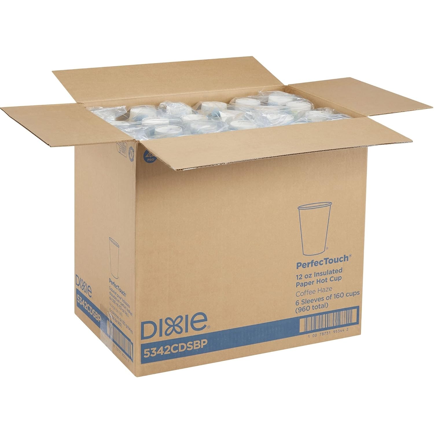 Dixie PerfecTouch 12 oz. Insulated Paper Hot Coffee Cup by GP PRO (Georgia-Pacific), Coffee Haze, 5342CDSBP, 160 Cups Per Case, Coffee Haze Design