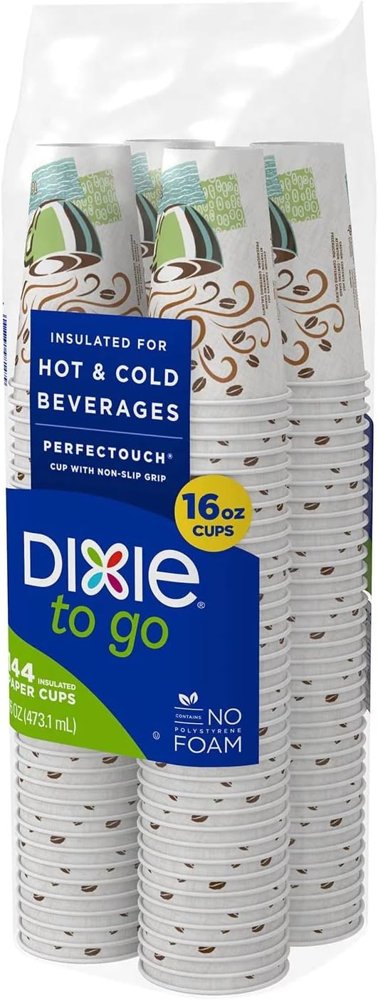 Dixie PerfecTouch Insulated Hot/Cold Paper Cups, Coffee Haze, 16 Oz (144 Count)