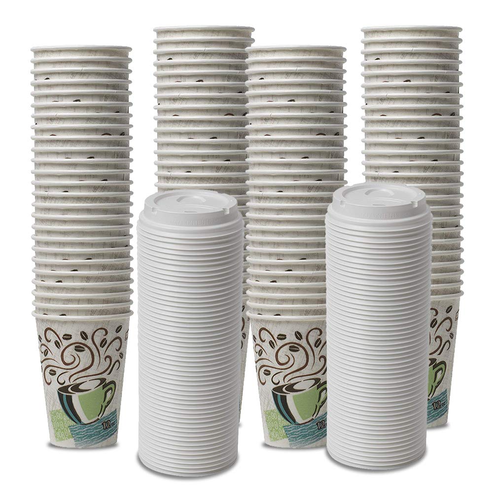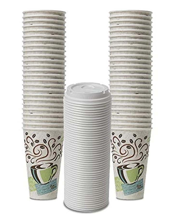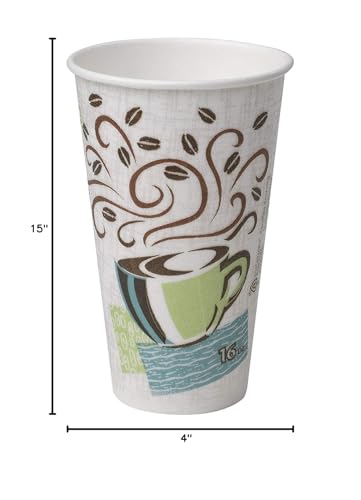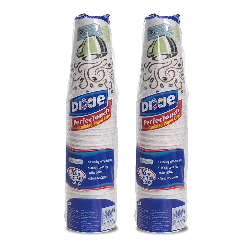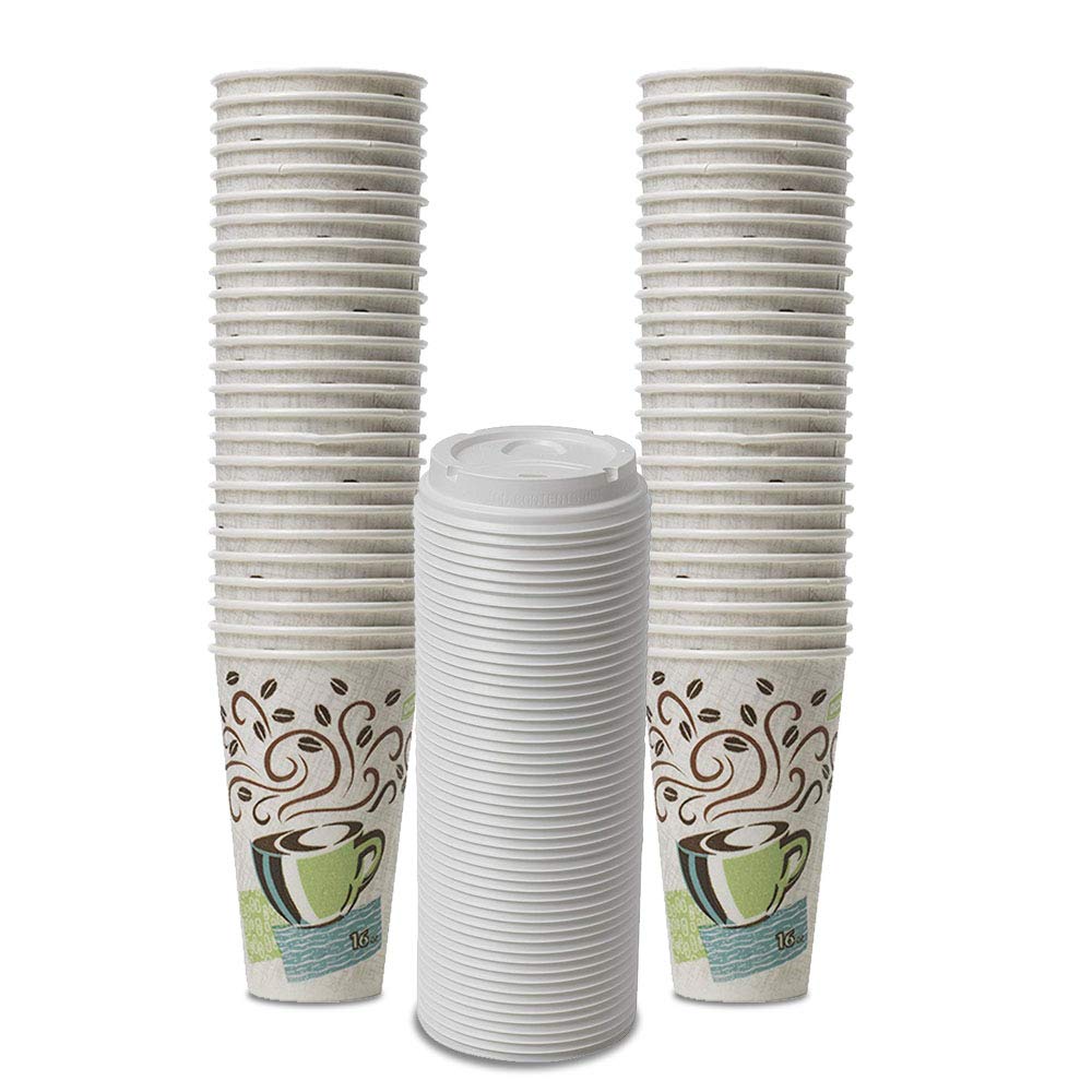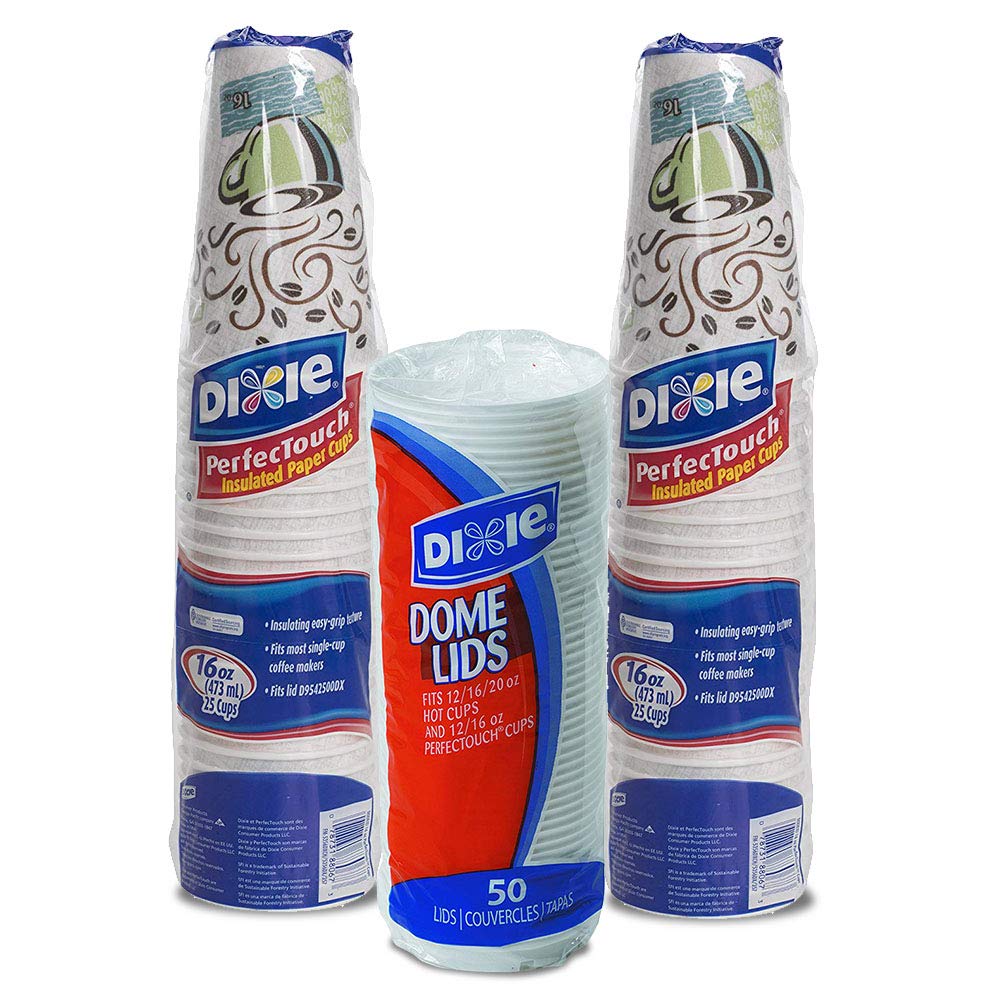 Dixie PerfecTouch WiseSize Coffee Design Insulated Paper Cup, 16oz Cups and Lids Bundle (16 oz, 50 Cups, 50 Lids)