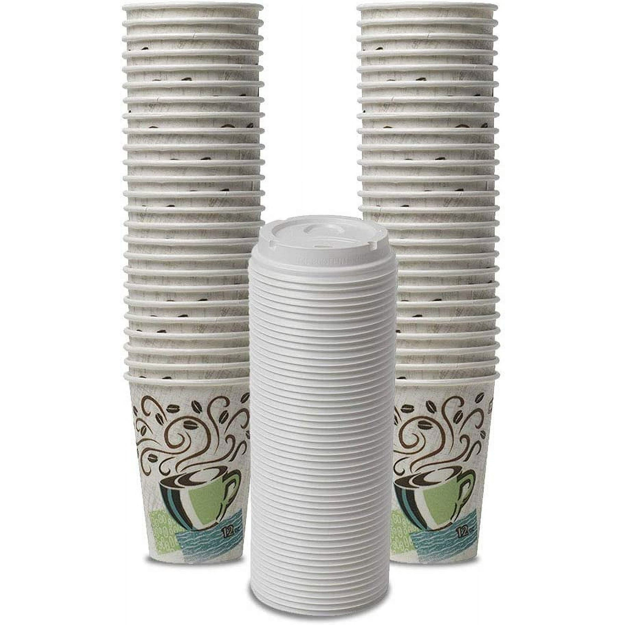 Dixie PerfecTouch WiseSize Coffee Design Insulated Paper Cup, 12oz Cups with Lids - 50 Cups & 50 Lids