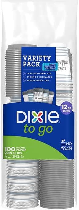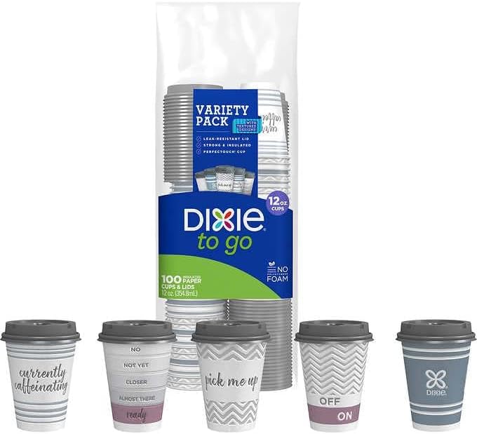 Dixie To Go Coffee Cups and Lids, 12 Oz, 120 Count, Assorted Designs, Disposable Hot Beverage Cups & Lids