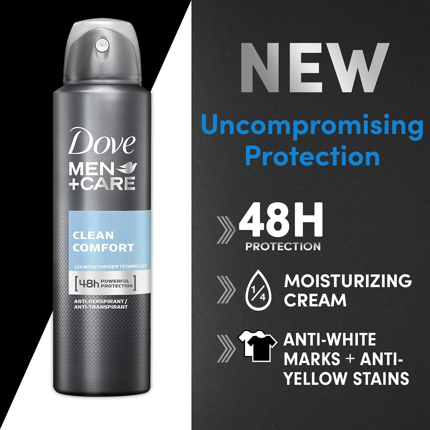 • POWERFUL ODOR AND SWEAT PROTECTION: Stay fresh and dry all day with Dove Men+Care Clean Comfort Antiperspirant Spray. Designed to fight sweat and body odor, this men's deodorant offers up to 48-hour protection to keep you feeling confident and comfortable.