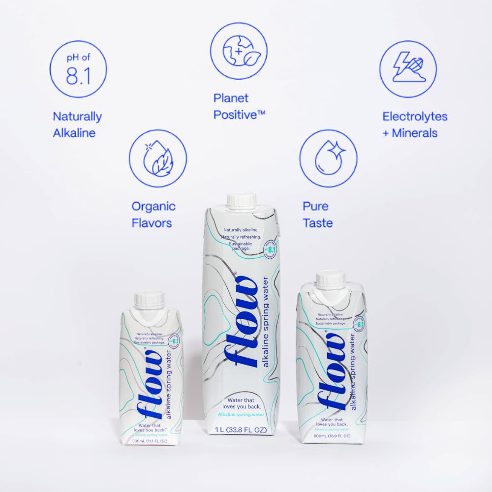 Experience water the way nature intended. Flow water emerges from our springs alkaline (pH ±8.1), with naturally-occurring electrolytes and minerals that give it a pure, refreshing taste. And since it comes in 100% recyclable and renewable packaging, you can quench your thirst for a healthier planet, too.