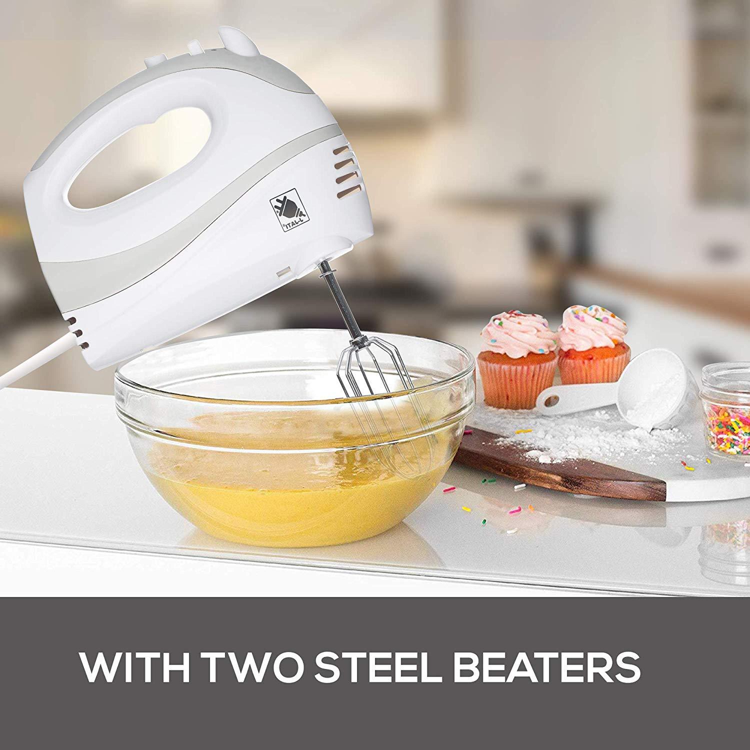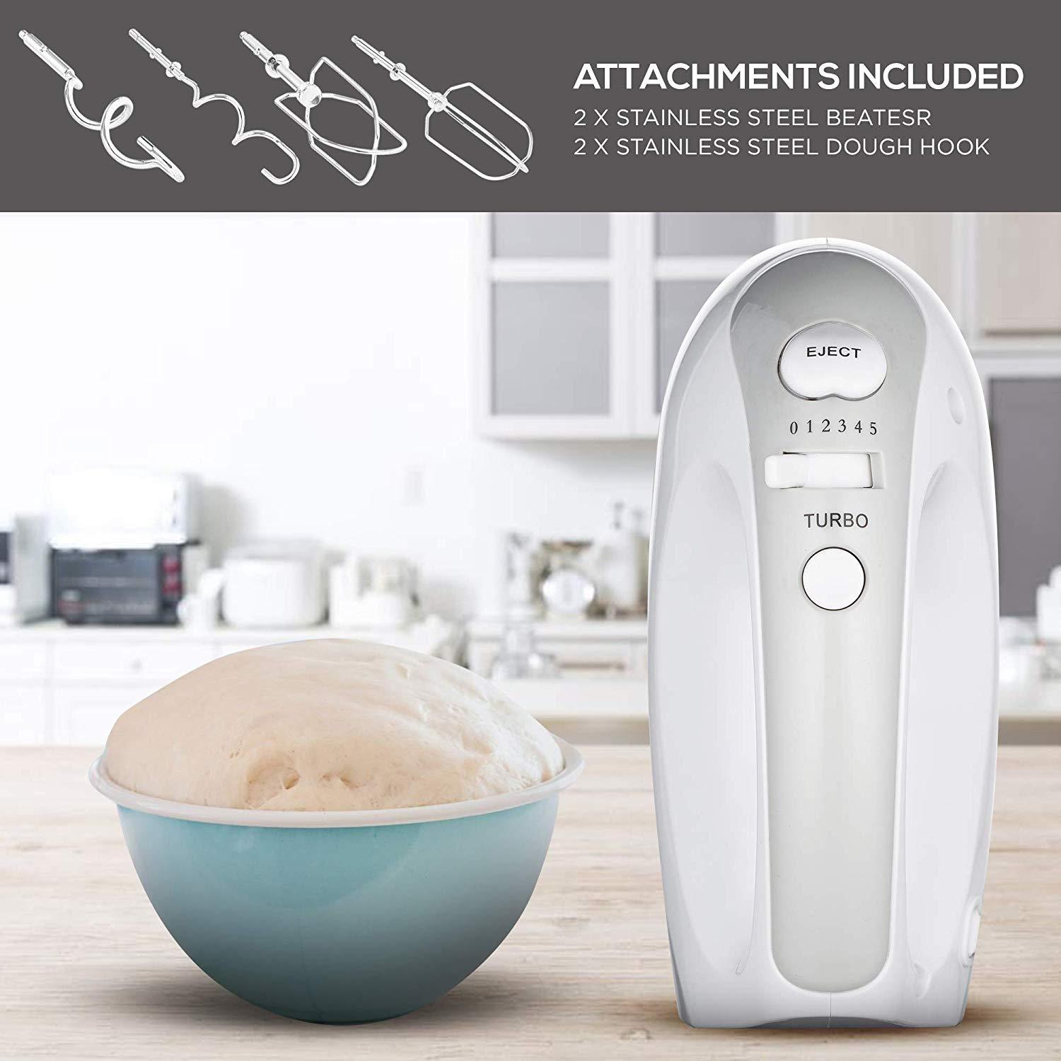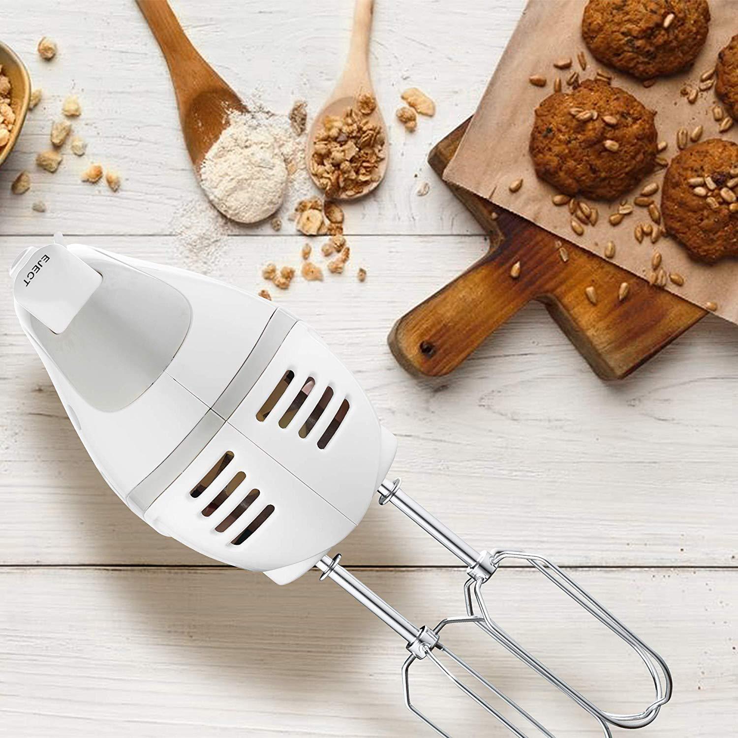 Features Easily and quickly remove any accessory from the hand mixer with the single-handed press of a button. 5 Speeds Combine ingredients at speed one for slowly stirring in chunky ingredients, speed four for mashing potatoes, speed seven for beating egg whites and whipping meringue. Soft Start Feature brings the beaters up to the selected speed gradually to help prevent ingredients from splattering. Lock the cord into either the left or right side of the mixer so you can approach ingredients from any angle. The round cord is easy to wipe clean. Soft Grip Handle provides comfort while mixing. Product Description The J-Jati Hand Mixer 5 Speed Hand Mixer easily mixes even the heaviest ingredients with ease. Switch from dense cookie dough to whipped cream with just one touch thanks to the slide control. This powerful motor with automatic feedback can perform any mixing task your recipes require. Features - 220 watts of power with automatic feedback - Easy-to-use speed control and beater eject lever - Swivel cord for right-handed or left-handed use - Extra-long self-cleaning beaters with no center posts Bread Stir the dough evenly to meet your various needs for dough, and to achieve a stretchable film. No matter what kind of bread you want, J-Jati Electric Hand Mixer can meet your needs. The rich egg scent blends with the sweet taste and the crispy shell wrap the soft egg tarts, not only for children, but even adults will fall in love with this taste. potatoes Stir the cooked potatoes evenly, add different ingredients to suit different tastes, also can take it together with carefully prepared sauces. It is definitely a must-have for entertaining guests. With a pair of skillful hands and the infinite imagination, you will not miss the opportunity to make pizza at home. J-Jati Electric Hand Mixer will be your good partner.Features Easily and quickly remove any accessory from the hand mixer with the single-handed press of a button. 5 Speeds Combine ingredients at speed one for slowly stirring in chunky ingredients, speed four for mashing potatoes, speed seven for beating egg whites and whipping meringue. Soft Start Feature brings the beFeatures Easily and quickly remove any accessory from the hand mixer with the single-handed press of a button. 5 Speeds Combine ingredients at speed one for slowly stirring in chunky ingredients, speed four for mashing potatoes, speed seven for beating egg whites and whipping meringue. Soft Start Feature brings the be