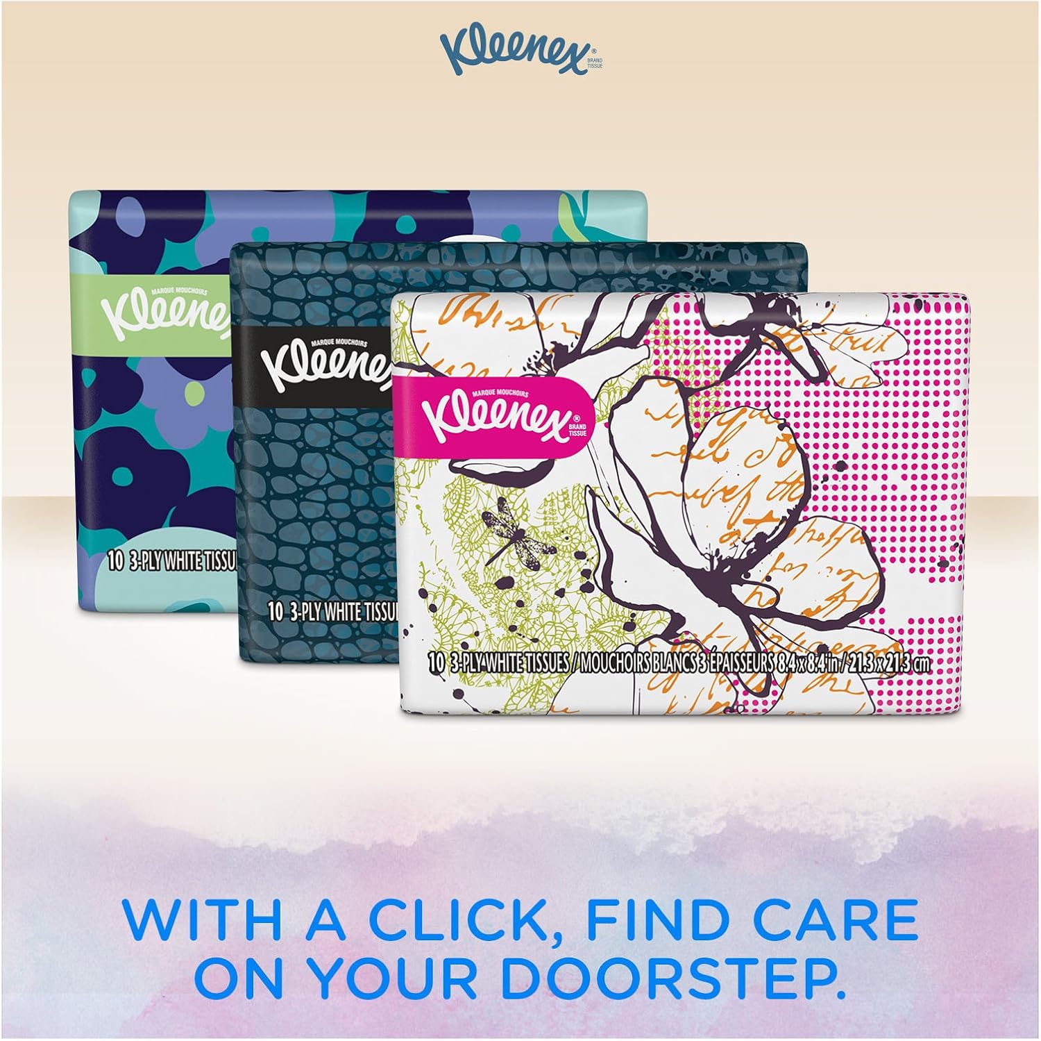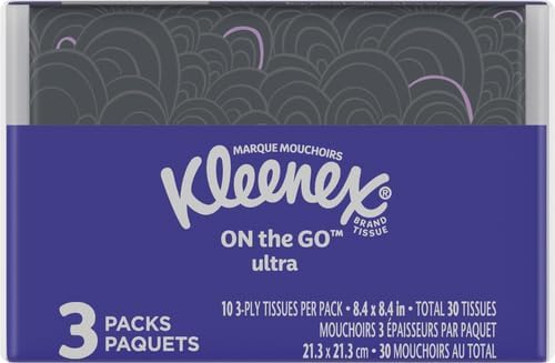 Dinner for two? Hiking adventure? Runny noses can happen anywhere. Stay prepared with Kleenex On-the-Go Facial Tissues. Whether you’re traveling solo or bringing friends along, with Kleenex On-the-Go Facial Tissues, you get 16 packs of 10 tissues, so you have plenty of tissues for any occasion. Our soft, durable, thick 3-layer facial tissues in a convenient travel pack—small enough to fit in pockets, purses, backpacks or travel bags—are ultra-absorbent to help you stay prepared wherever you are. Plus, you can find one of these Kleenex travel tissue packs that fits the occasion because each pack of tissues is available in various colors and designs. Got the sniffles? Soothe that runny nose by also trying a box of Kleenex Soothing Lotion or Kleenex Ultra Soft facial tissues.