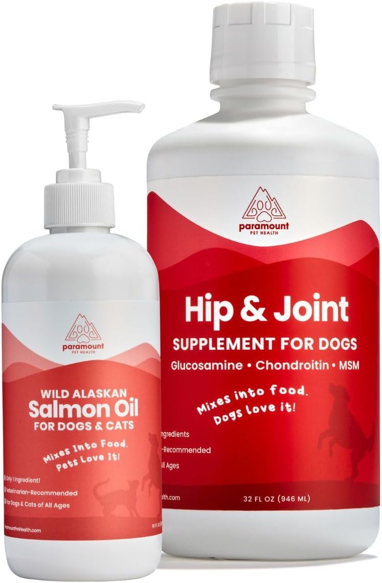 Give your dog comprehensive joint care and skin wellness with this vet-approved duo. The bundle combines a natural glucosamine supplement-enriched with chondroitin and hyaluronic acid to lubricate joints, reduce stiffness, and promote mobility-with Wild Alaskan Salmon Oil, packed with omega-3 fatty acids to nourish skin, enhance coat shine, and support immune health. Both supplements are easy to administer (mix with food) and formulated with premium, natural ingredients for fast absorption and gentle digestion. Ideal for active dogs, senior pets, or breeds prone to joint discomfort, this bundle delivers targeted support for long-term vitality, helping your dog stay agile, comfortable, and looking their best. Made in the USA and vet-recommended, it’s a holistic solution for dogs needing joint lubrication, skin hydration, and daily wellness.