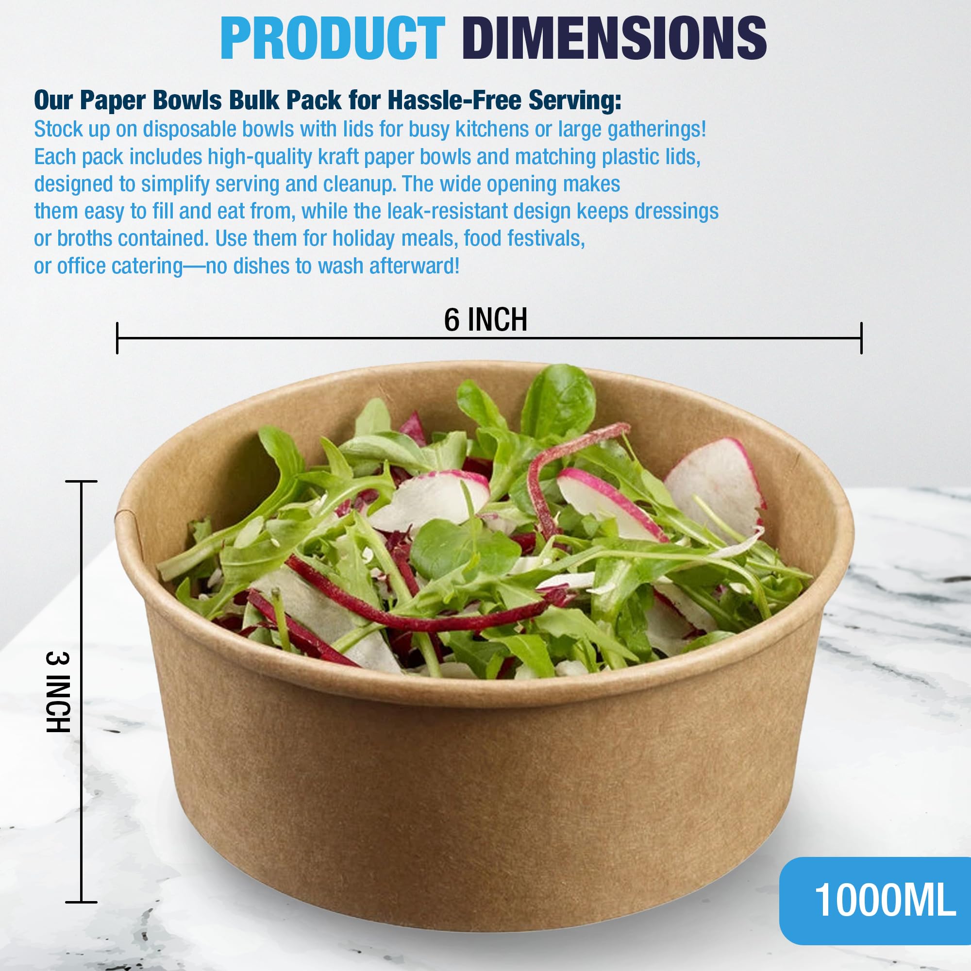 Ruthy's Outlet Kraft Salad Bowls W/Clear Lids – Disposable Paper Salad Containers, Eco-Friendly | Leak-Resistant | Microwave Safe – Ideal for Meal Prep, To-Go Orders & Catering (25, 16 oz)